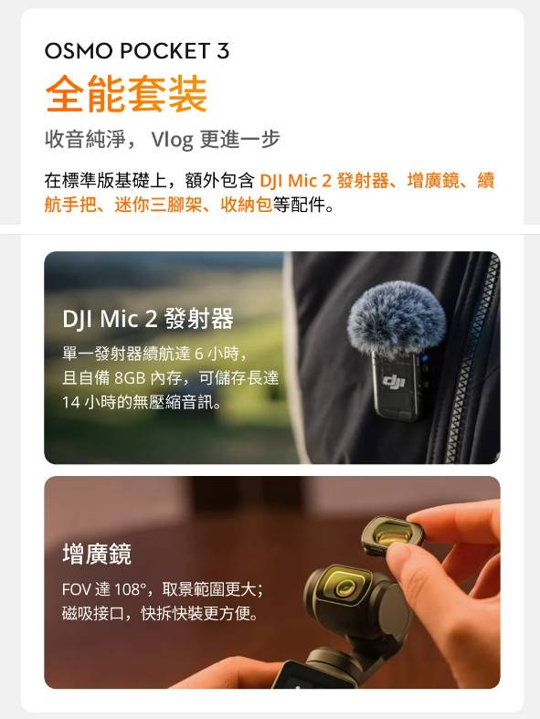 DJI 大疆 OSMO POCKET 3 全能套裝 手持口袋攝影機/相機1英吋CMOS旗艦畫質